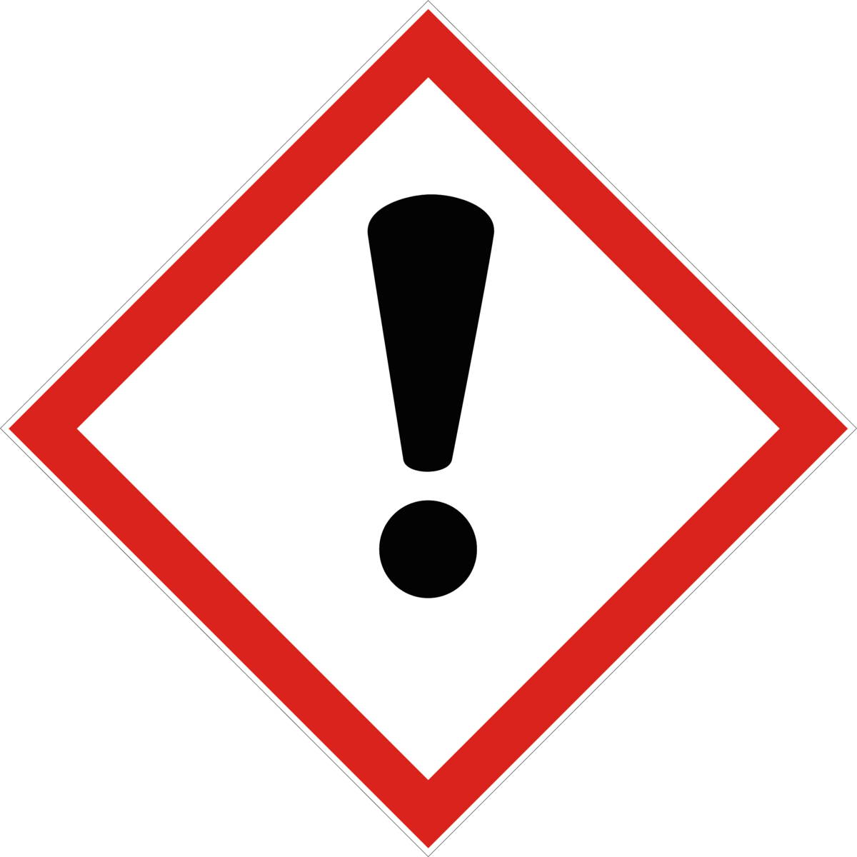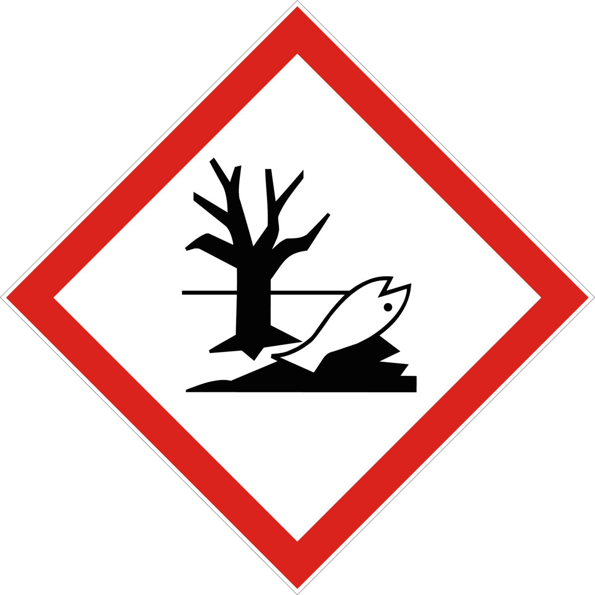 GHS 07: dickes Ausrufe- zeichensymbol, GHS09 Umwelt mit abgestorbenem Baum, totem Fisch und Gewässer