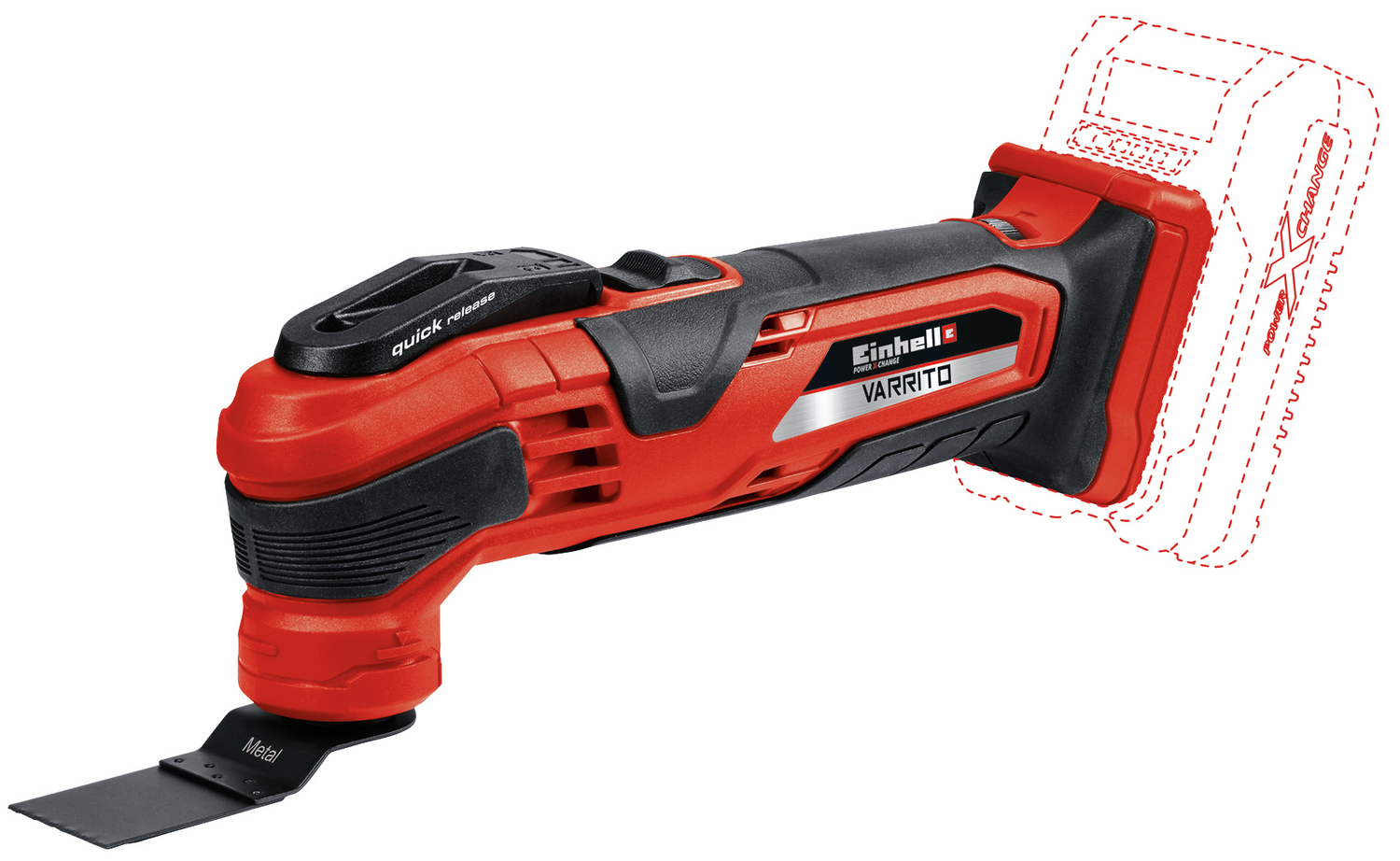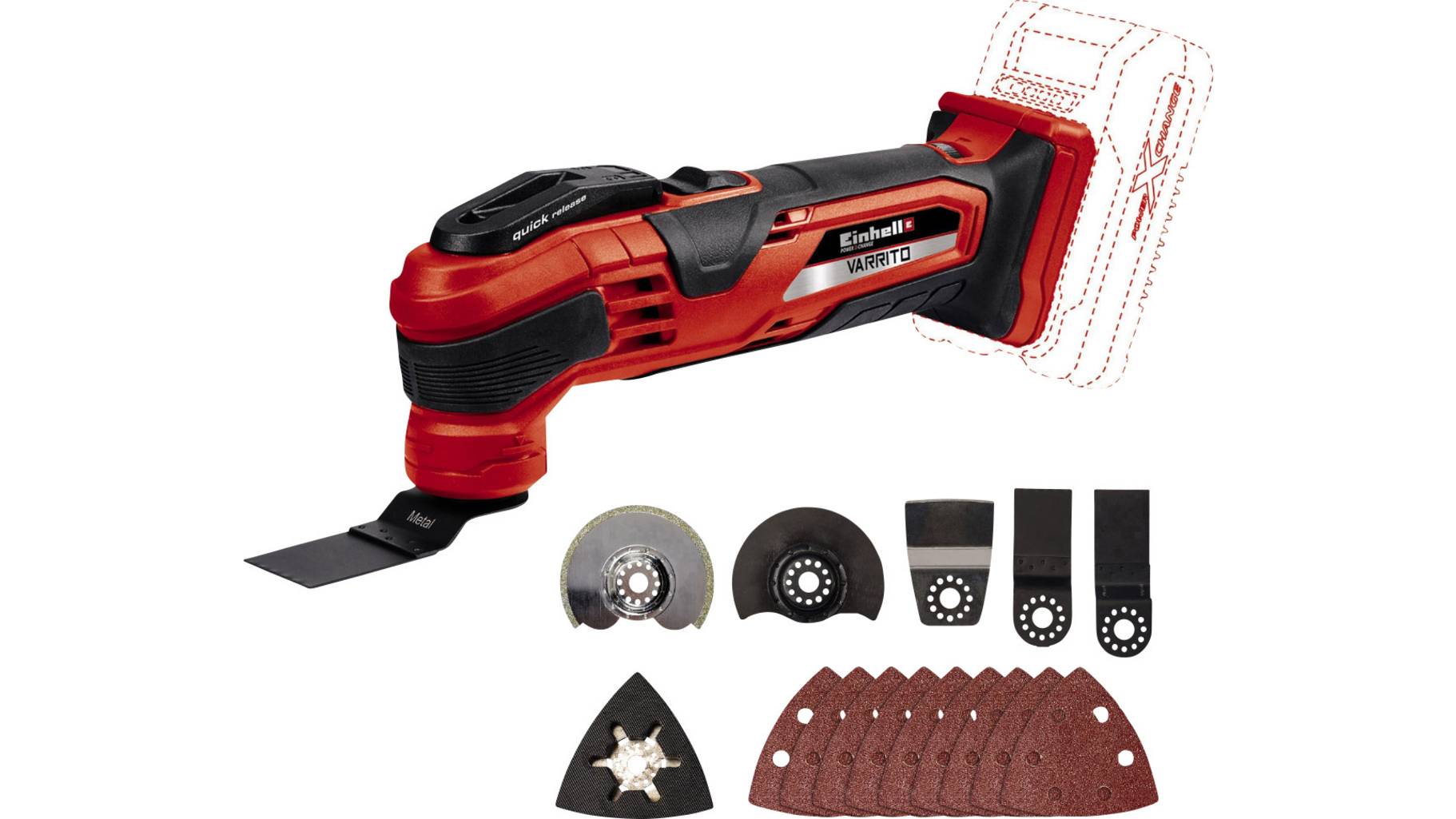 Das Einhell Akku-Multifunktionswerkzeug Varrito ist ein flexibler und hochwertiger Helfer bei Ausbau-, Renovierungs- oder Sanierungsarbeiten. Dank der umfangreichen Ausstattung gehen Arbeitsschritte wie Sägen, Schleifen oder Schaben mühelos von der Hand. Als Mitglied der Power X-Change-Familie stehen dem Anwender alle Vorteile der hochwertigen Lithium-Ionen-Technologie von Einhell offen. Das Akku-Multifunktionswerkzeug ist hochwertig und ergonomisch konzipiert, so dass die Anwendung in der Praxis eine enorme Erleichterung darstellt. So sorgt der Schnellspannverschluss für einen werkzeuglosen Zubehörwechsel. Dieser lässt sich dank der magnetischen Werkzeugaufnahme komfortabel und schnell vollziehen. Die 12-Pin-Werkzeugaufnahme ermöglicht eine flexible Positionierung des Zubehörs.