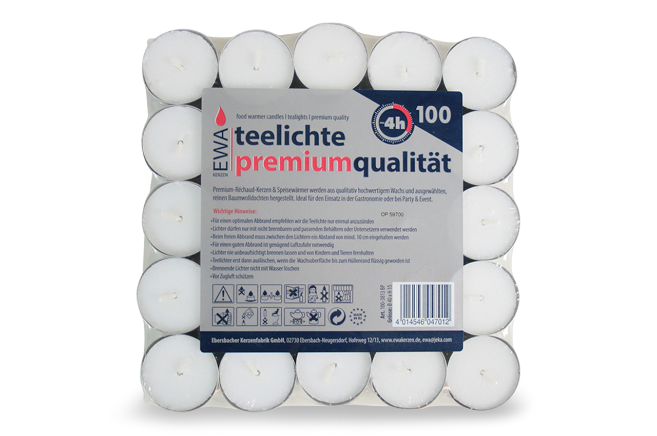 Ebersbach Teelichte Premium 4h Blockpack, 100er Pack